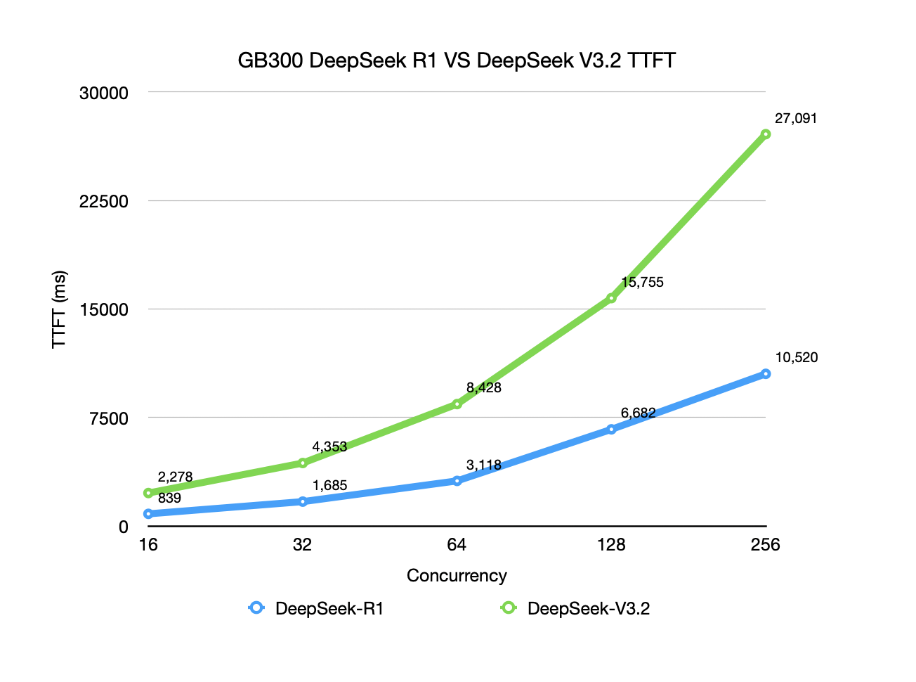 As shown in the chart below, with the same GB300 setup, DeepSeek R1’s Prefill throughput capability is ~ 3x that of DeepSeek V3.2.